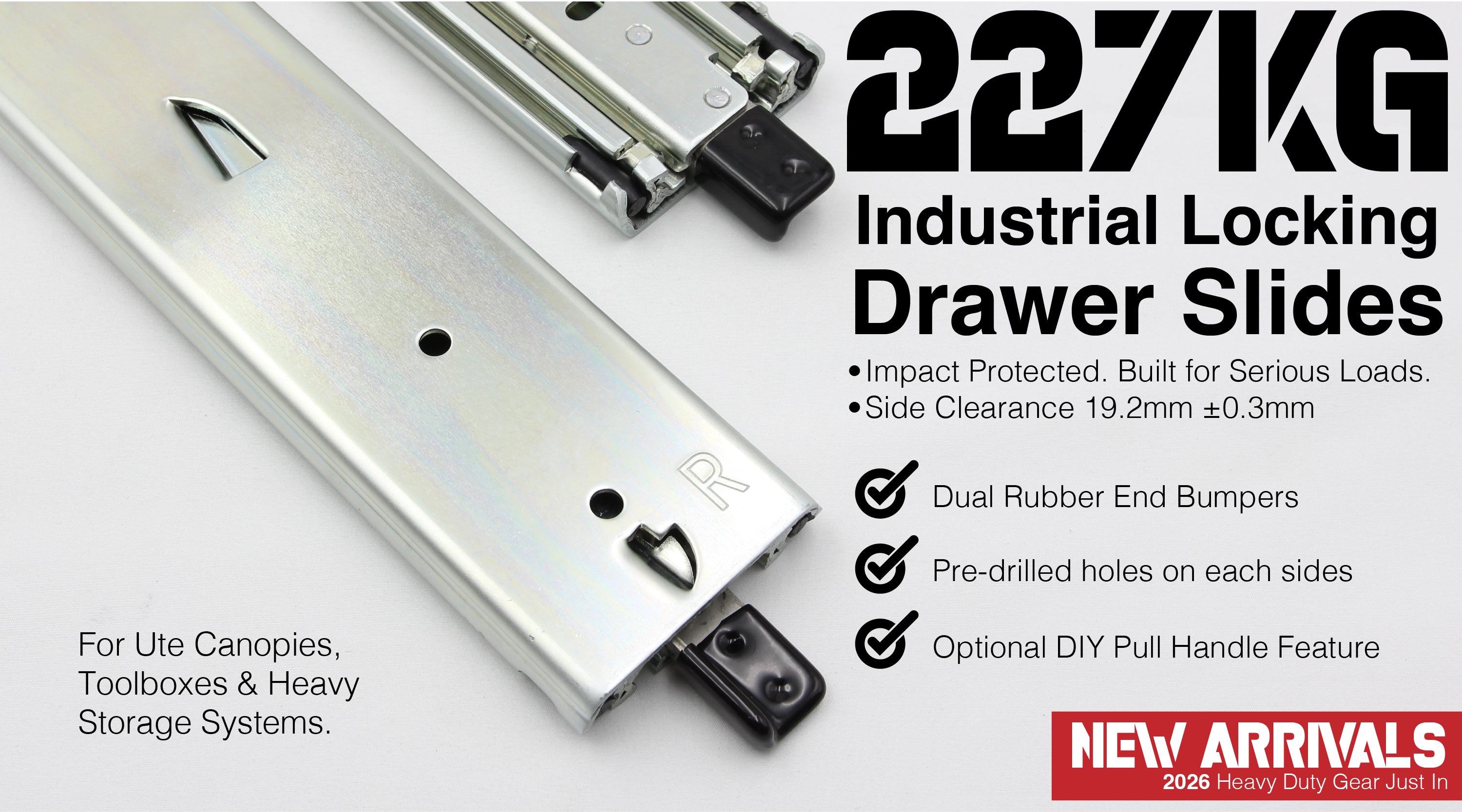 NEW | 227kg Locking Drawer Slides | One Pair | Heavy Duty | Full Extension Runners