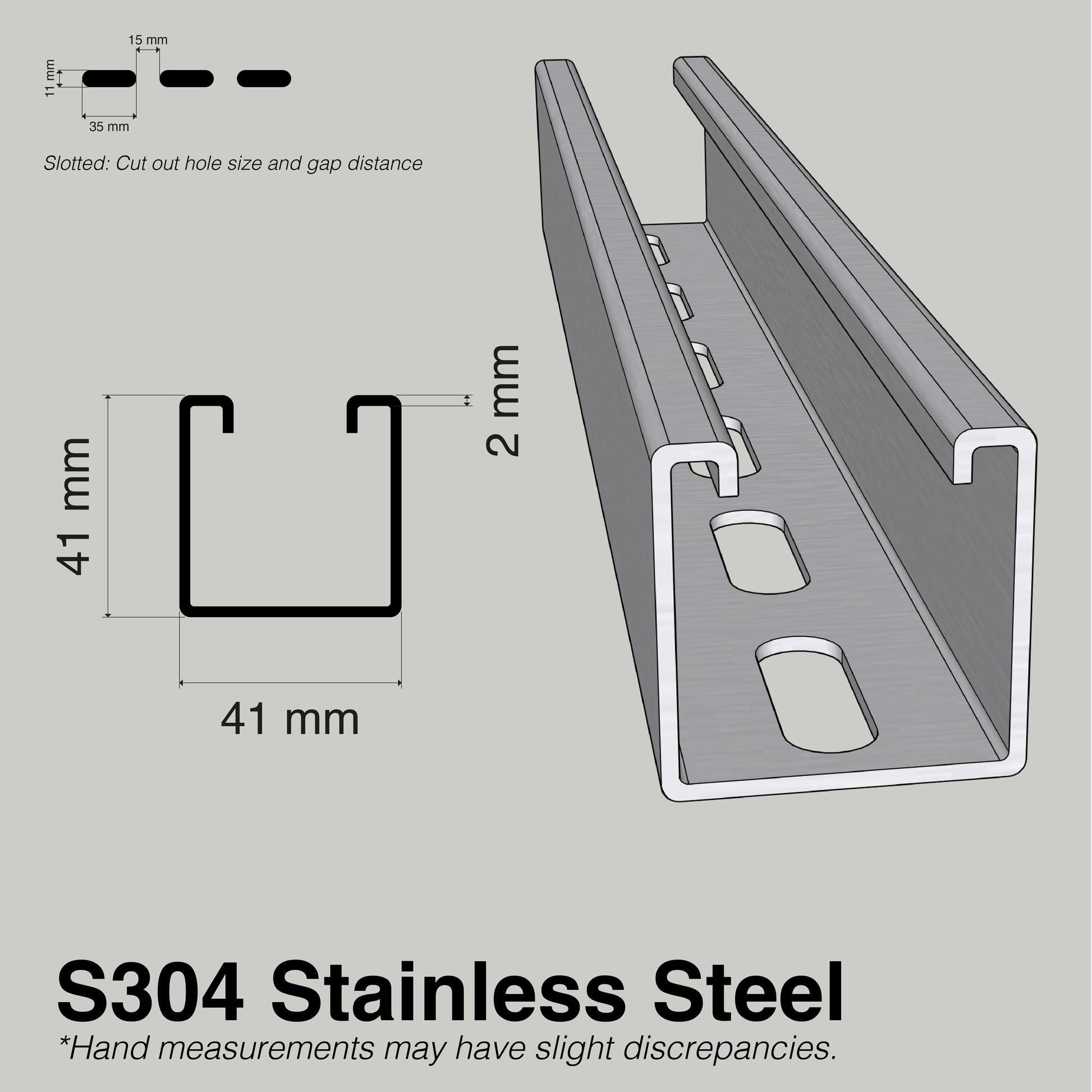Unistrut Track Slotted | S304 Stainless Steel | Heavy Duty Channel