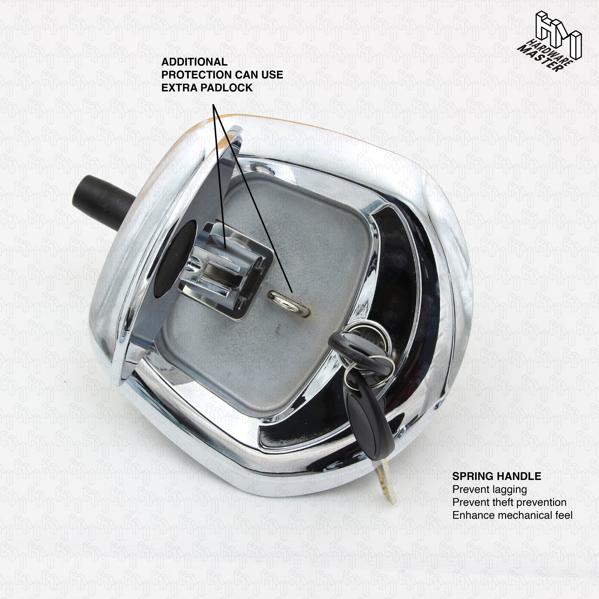 Compression Folding Lock is crafted from high-quality black zinc alloy and chrome plating, offering exceptional strength and durability. Available in multiple colour options, it includes key locking functionality and additional padlock protection, ensuring your equipment stays secure and protected.